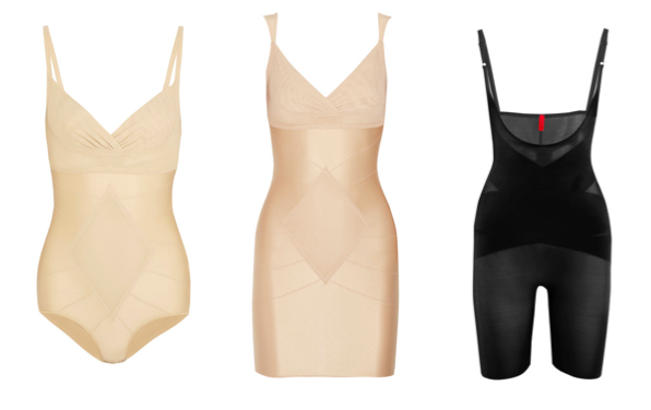 Hvit og svart silke camisole fra Lady Avenue, hudfarget fra Dolce & Gabbana. De to underkjolene, underskjørtet og de tre plaggene med hold-in-effekt er fra http://www.net-a-porter.com