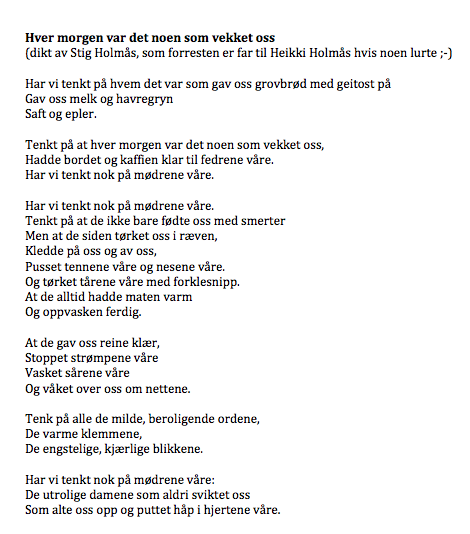 Tusen takk, Anne, for at du delte dette diktet på facebook i dag morges! Det passet så godt som intro til dagens blogginnlegg :-)